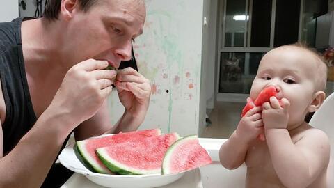 爸爸笑着回答:“是啊,夏天来了,吃瓜解暑,还能增进我们父子间的感情呢!”